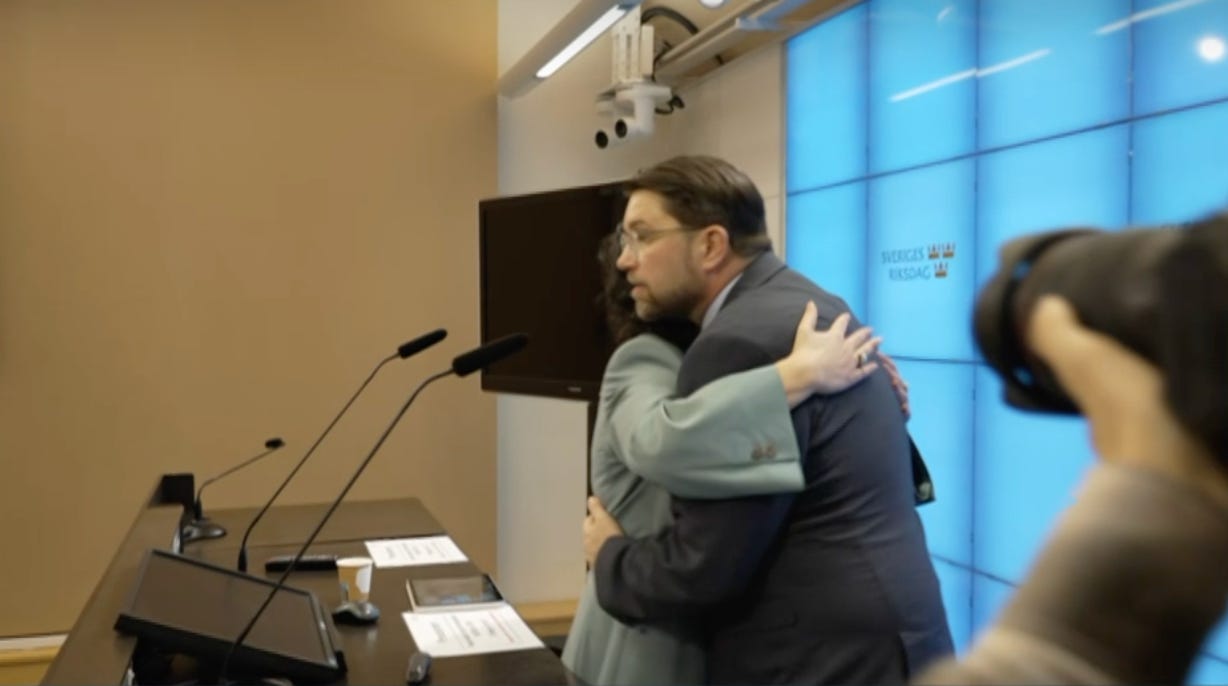 Och när Simona Mohamsson och Jimmie Åkesson förseglade sina partiers överenskommelse med en kram fick svensk politik något som liknade ett eget Kirk-och-Uhura-ögonblick.